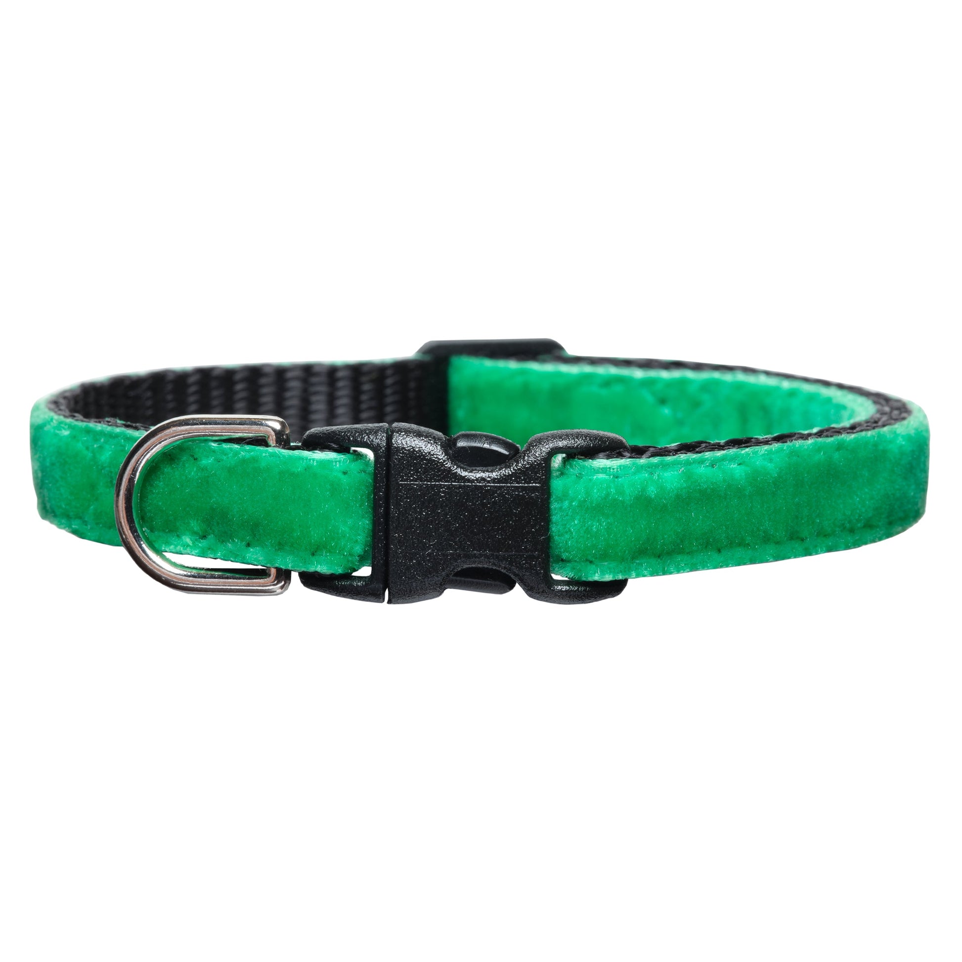 The Big Dill Cat Collar features bright green velvet. A holiday or everyday look any kitty would love.