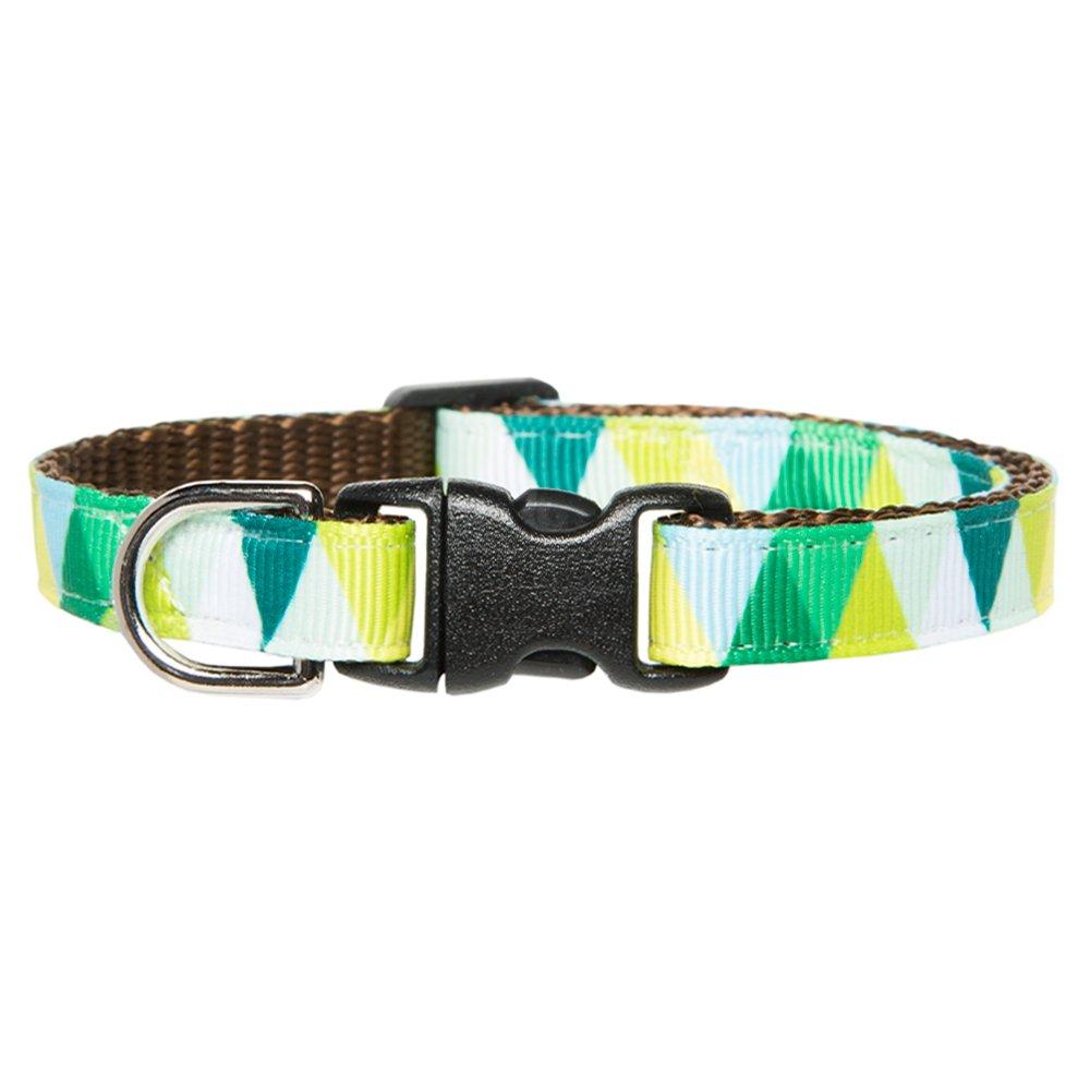 The Mountaineer cat collar features a multi green triangle print. This modern look is the perfect final touch for the kitty who loves the great outdoors.